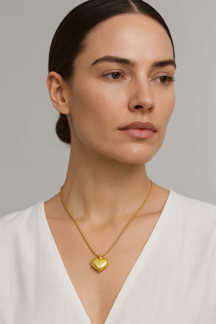 The Golden Heart Glow Necklace is a classic symbol of love and timeless elegance. Crafted with premium 18K gold plating, this necklace features a smooth, polished heart-shaped pendant that radiates warmth and sophistication. Paired with a sleek snake-style chain, it’s designed to add a luxurious touch to both everyday wear and special occasions. With its anti-tarnish, waterproof finish, this piece ensures enduring shine and beauty, making it a heartfelt addition to any jewelry collection.