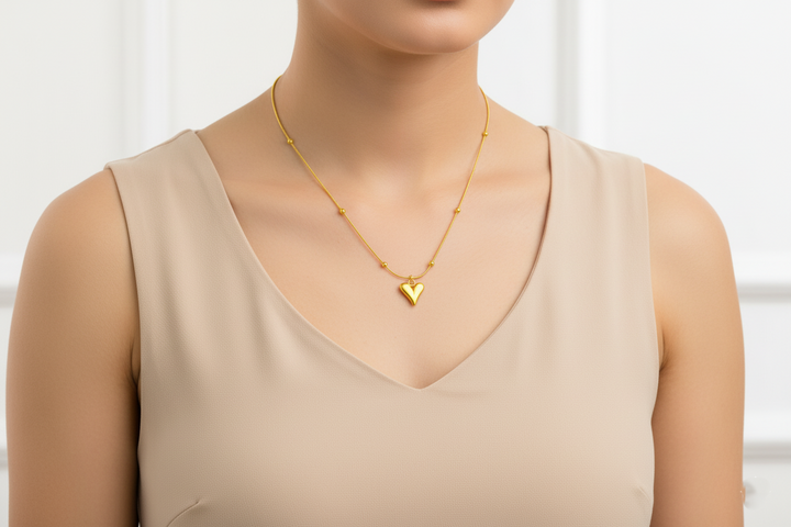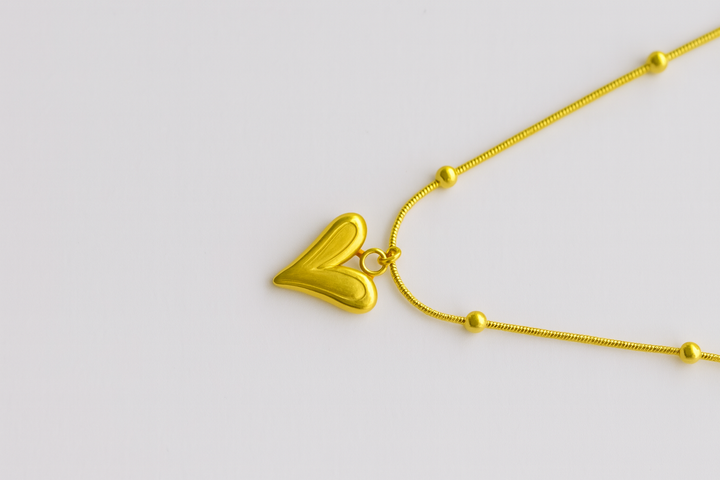 Elevate your elegance with the Golden Whisper Heart Charm Chain, expertly crafted to combine timeless style and delicate charm. Its finely polished gold finish ensures lasting brilliance, while the intricately designed heart charm adds a subtle yet striking statement. Perfect for layering or wearing solo, this piece enhances both casual and formal looks with understated sophistication. Designed for durability and comfort, the chain delivers a refined touch that complements any jewelry collection.