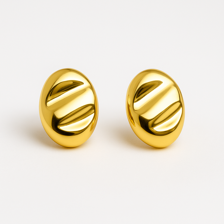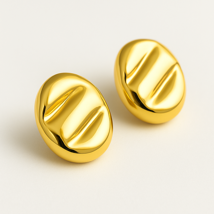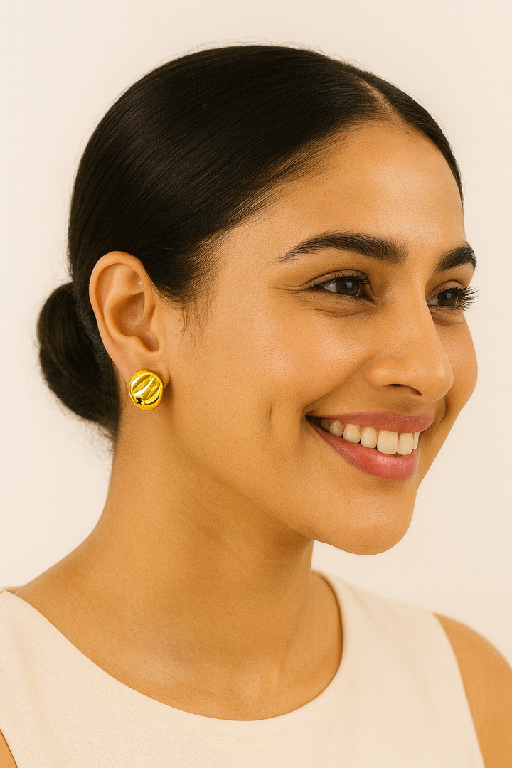 The Lustra Bold Dome Stud Earrings embody modern minimalism with a striking sculptural edge. Crafted in anti-tarnish, waterproof 18K gold plating, these round dome-shaped studs feature a unique ridged surface design that reflects light beautifully, adding depth and sophistication. Their bold yet compact silhouette makes them perfect for elevating everyday outfits while still standing out as a statement piece. Lightweight, skin-safe, and versatile, they’re designed for women who love effortless elegance with a contemporary twist.
