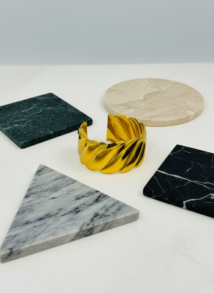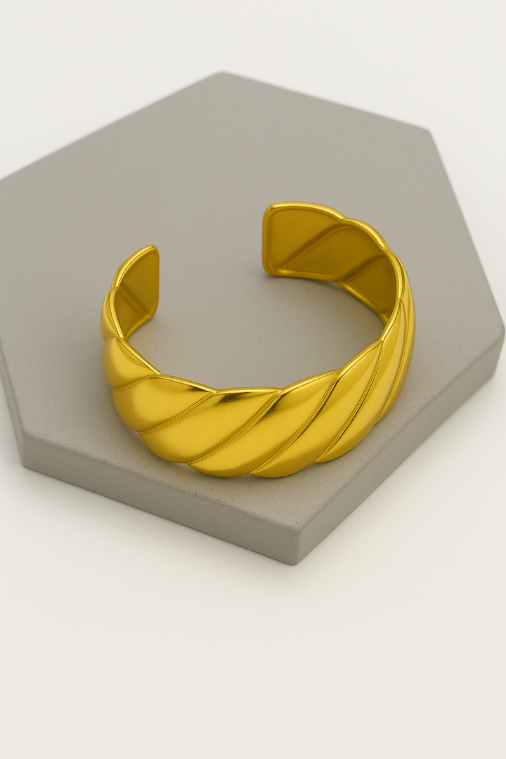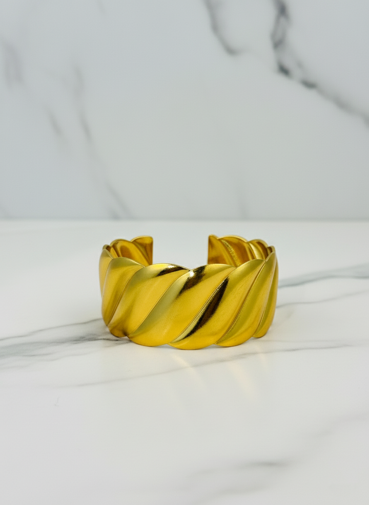 Ziwels Bold Twisted Cuff Bracelet – 18K Gold Plated Stainless Steel | Anti-Tarnish, Waterproof & Adjustable