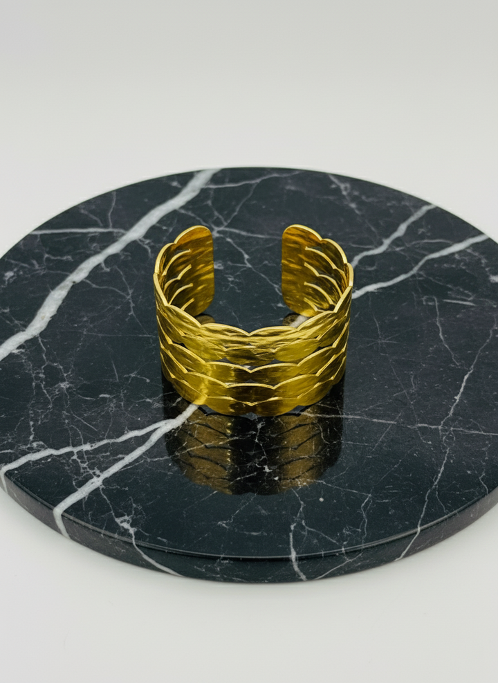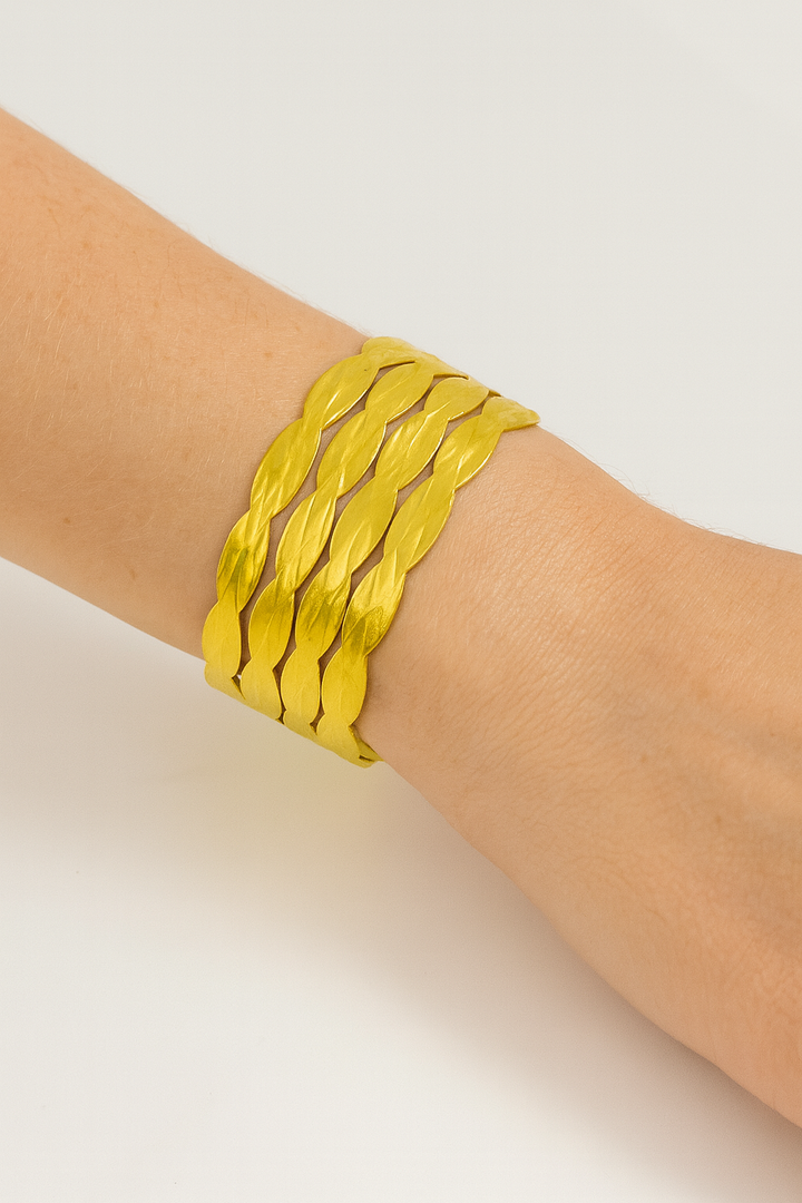 Design: Wide cuff bracelet with overlapping braid-inspired pattern