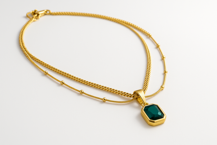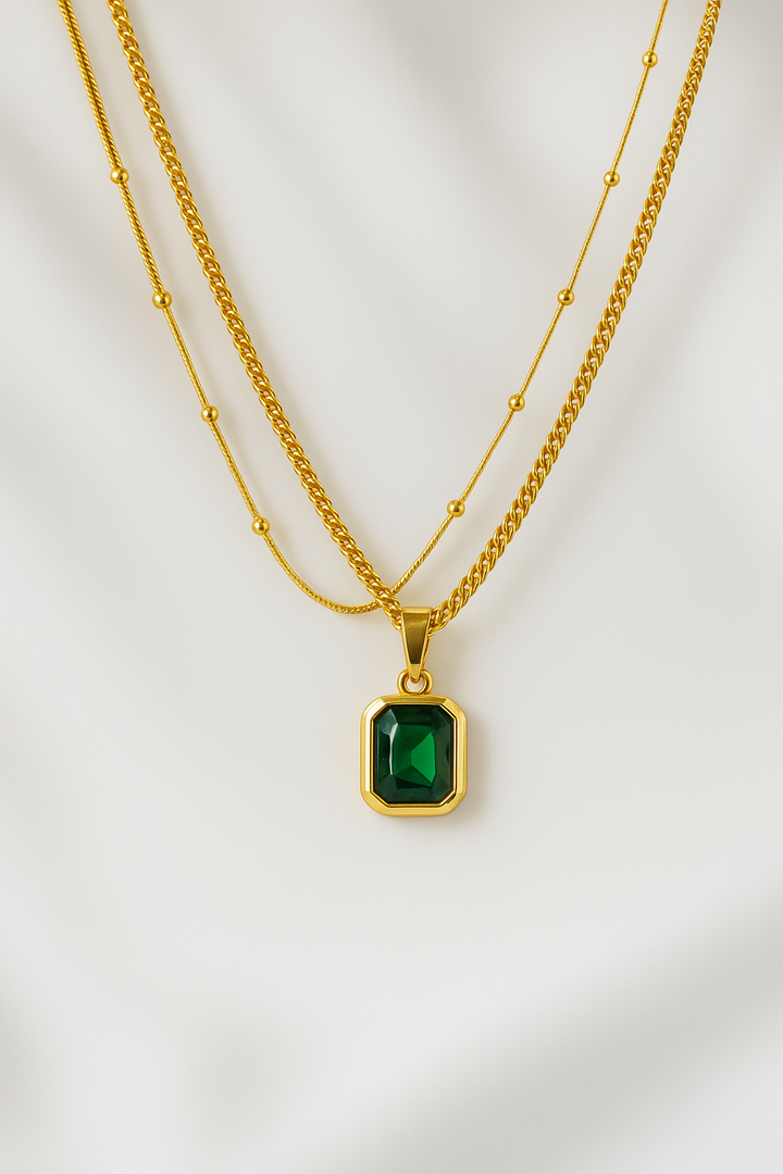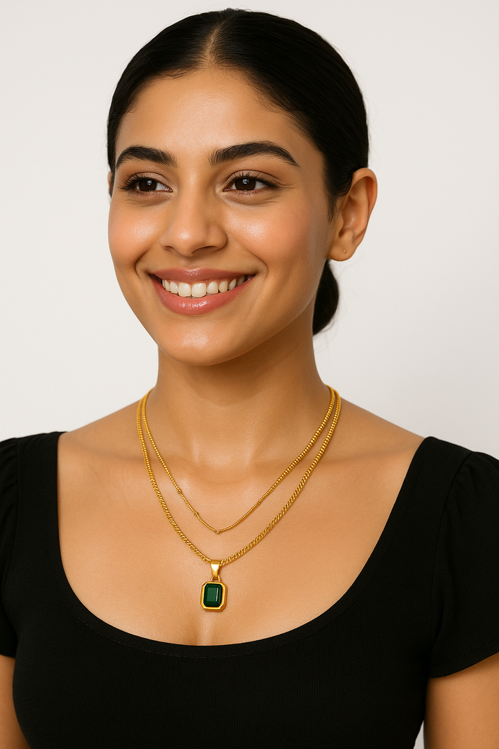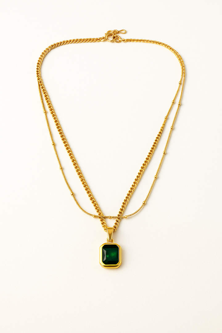 Ziwels Emerald Green Pendant Layered Necklace – 18K Gold Plated Stainless Steel | Anti-Tarnish & Waterproof