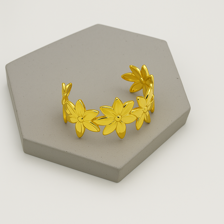 Ziwels Floral Bloom Cuff Bracelet – 18K Gold Plated Stainless Steel | Anti-Tarnish, Waterproof & Adjustable