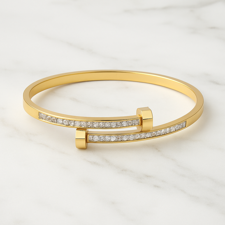 Ziwels Gold-Plated Crystal Bangle Bracelet – 18K Gold Stainless Steel | Anti-Tarnish, Waterproof & Hypoallergenic