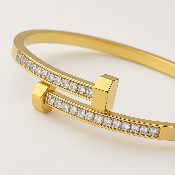 The Ziwels Gold-Plated Crystal Bangle Bracelet is where timeless elegance meets modern minimalism. Crafted from premium stainless steel and coated with luxurious 18K gold plating, this bracelet features two sleek parallel bars set with sparkling cubic zirconia crystals, offering a refined yet statement-making look.
