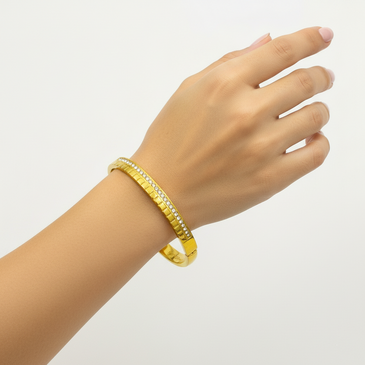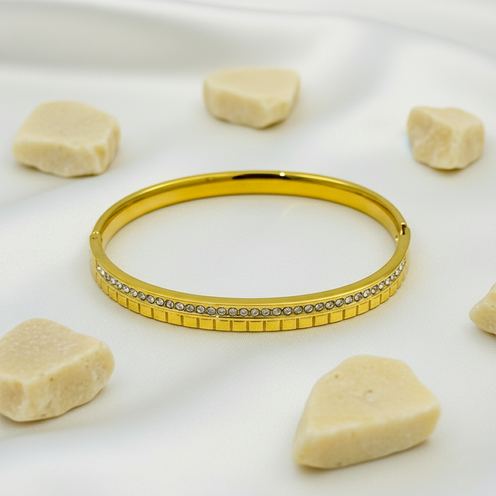 Ziwels Gold-Plated Crystal Line Bangle – 18K Gold Stainless Steel | Anti-Tarnish, Waterproof & Hypoallergenic