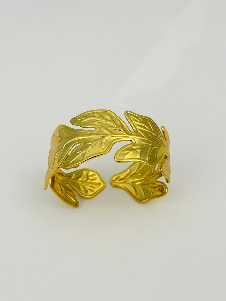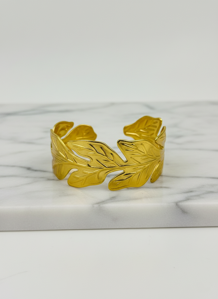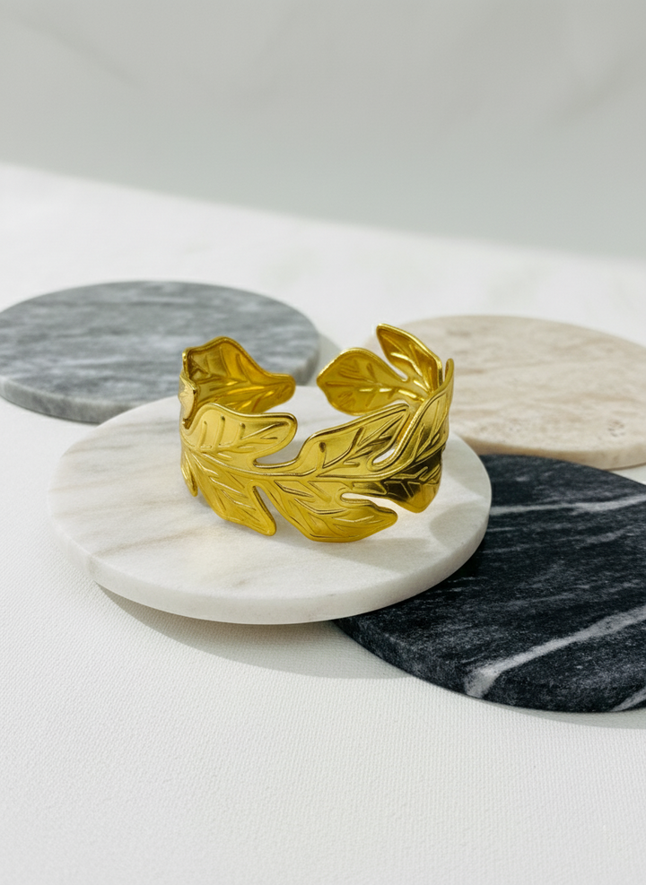 Ziwels Leaf Motif Cuff Bracelet – 18K Gold Plated Stainless Steel | Anti-Tarnish, Waterproof & Adjustable