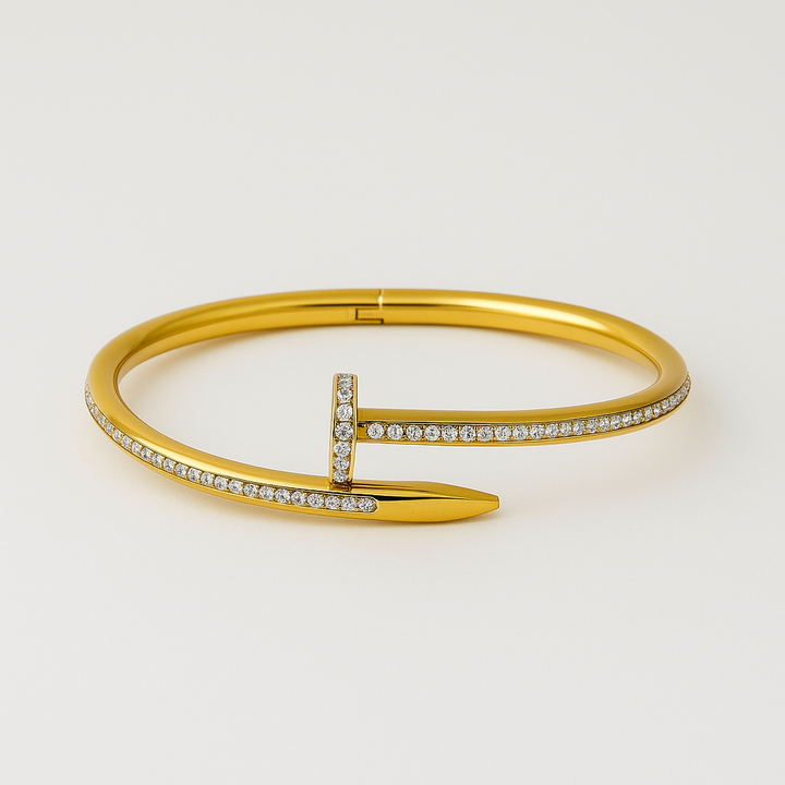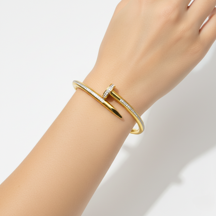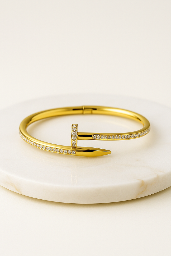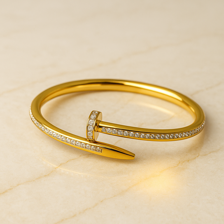Elevate your everyday elegance with the Ziwels Nail Design Gold Bracelet, a modern symbol of luxury and confidence. Expertly crafted with premium stainless steel and finished in 18K gold plating, this stunning bracelet captures the essence of timeless sophistication. The sleek nail-inspired silhouette adorned with delicate cubic zirconia stones adds a perfect blend of boldness and sparkle — ideal for both casual and evening looks.