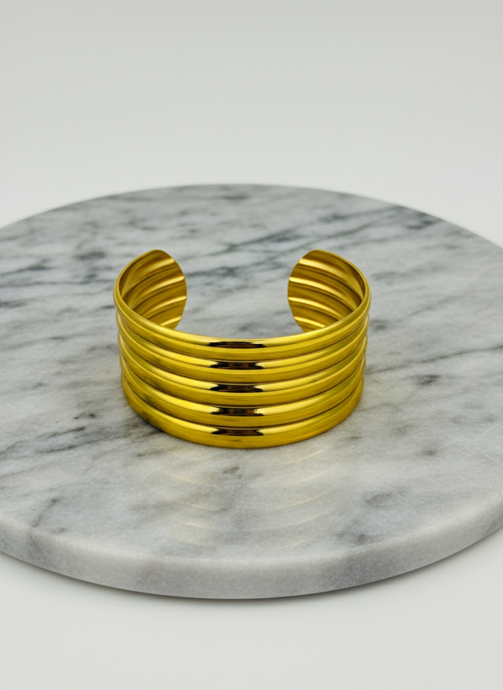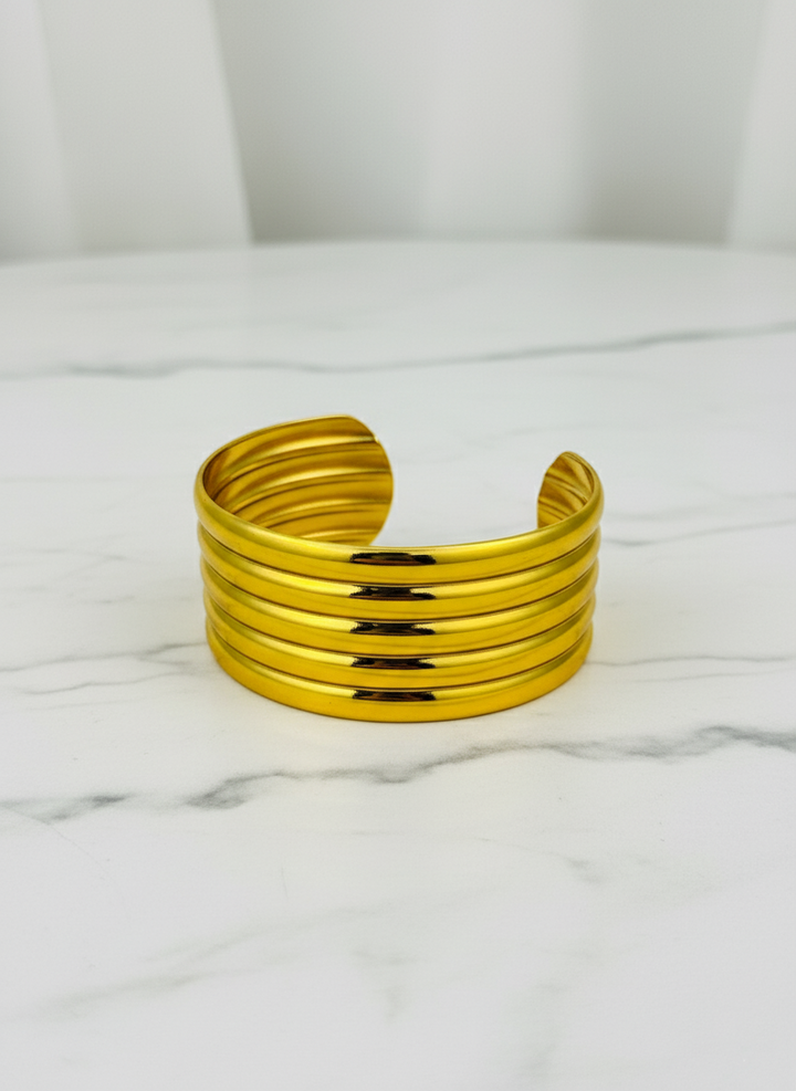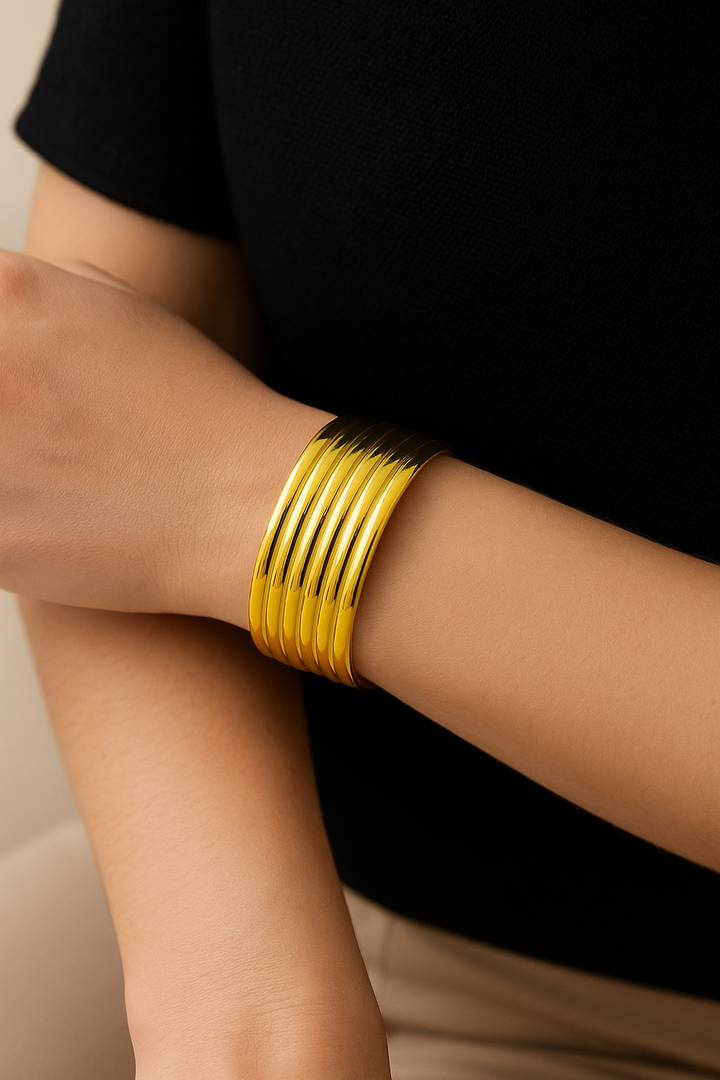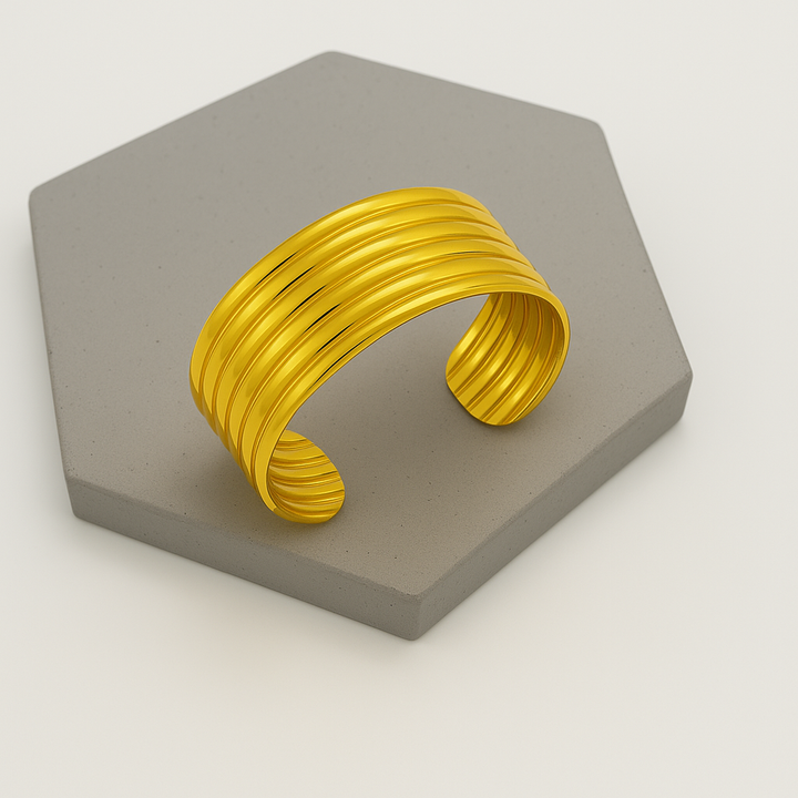 Ziwels Ribbed Cuff Bracelet – 18K Gold Plated Stainless Steel | Bold Multi-Ridge Design | Anti-Tarnish, Waterproof