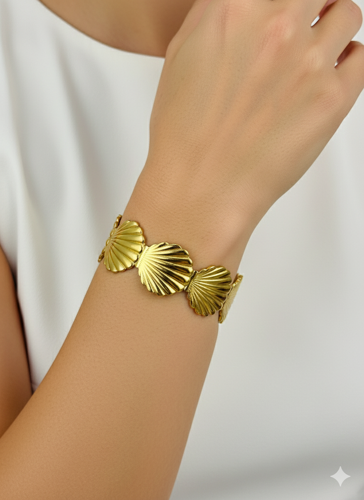 Ziwels Seashell Cuff Bracelet – 18K Gold Plated Stainless Steel | Anti-Tarnish, Waterproof & Adjustable