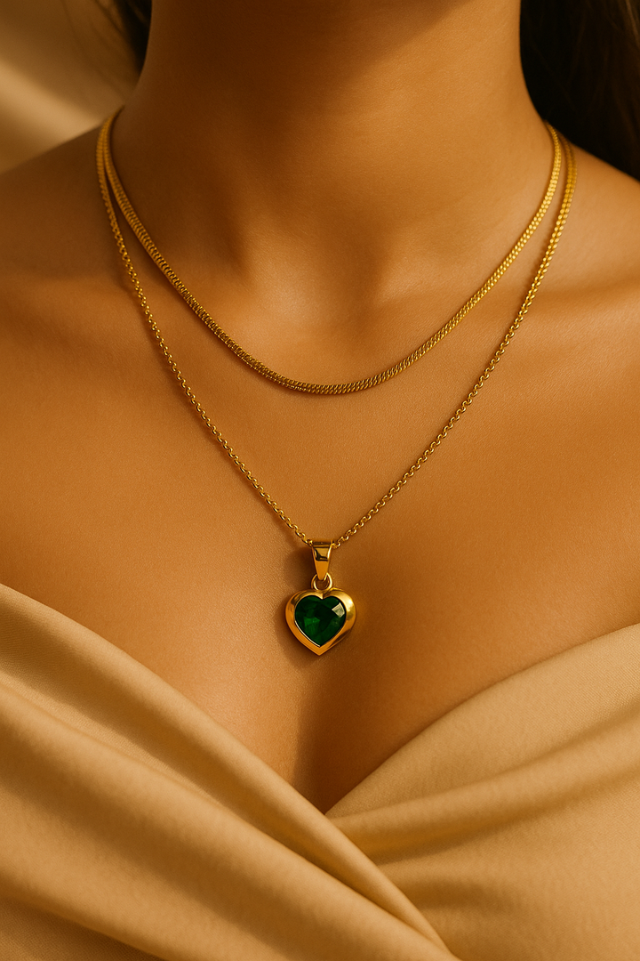 Ziwels Women’s 18K Gold-Plated Emerald Heart Pendant Necklace – Waterproof, Anti-Tarnish, Premium Jewellery