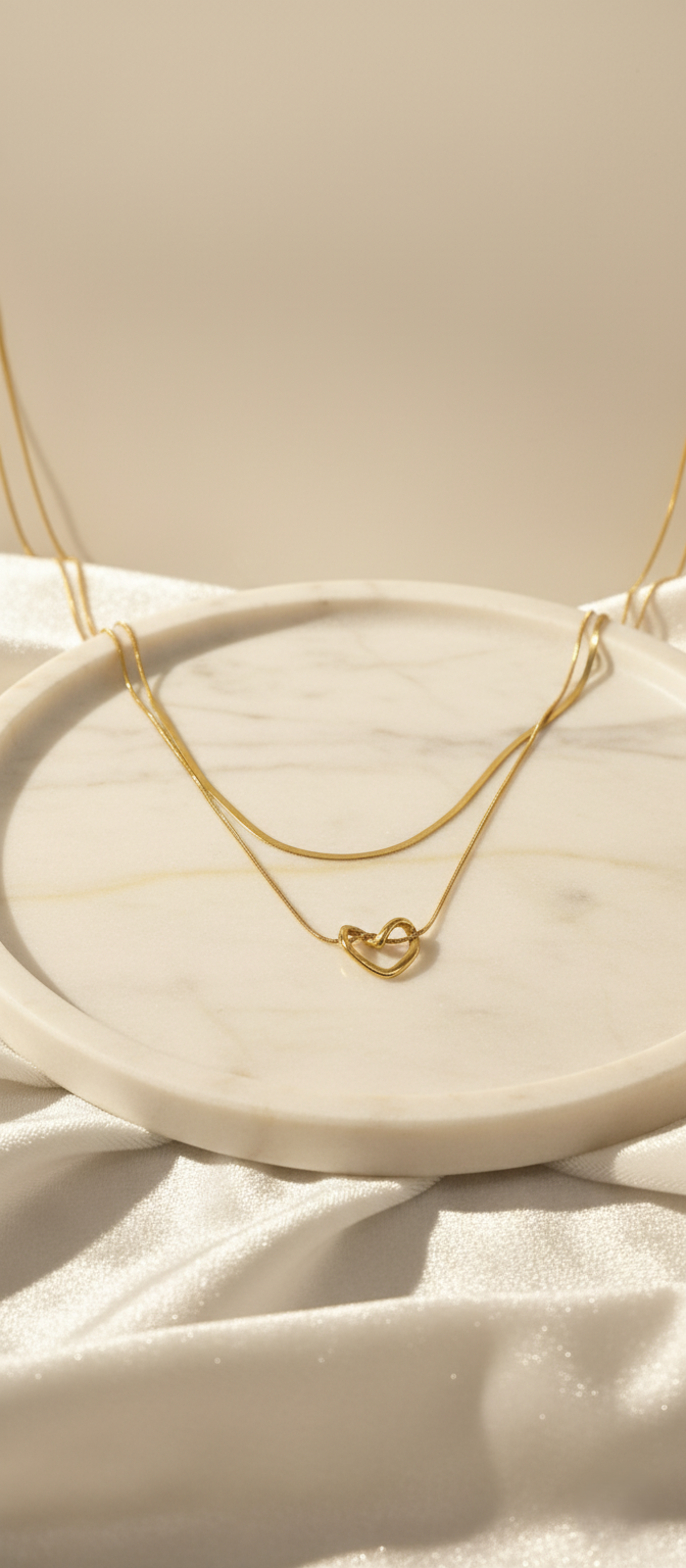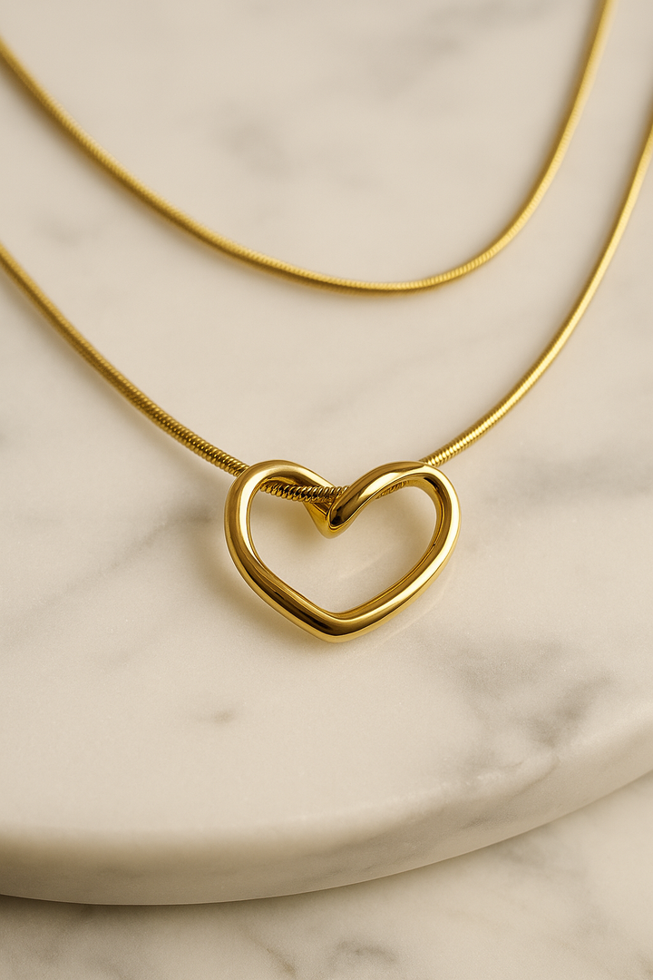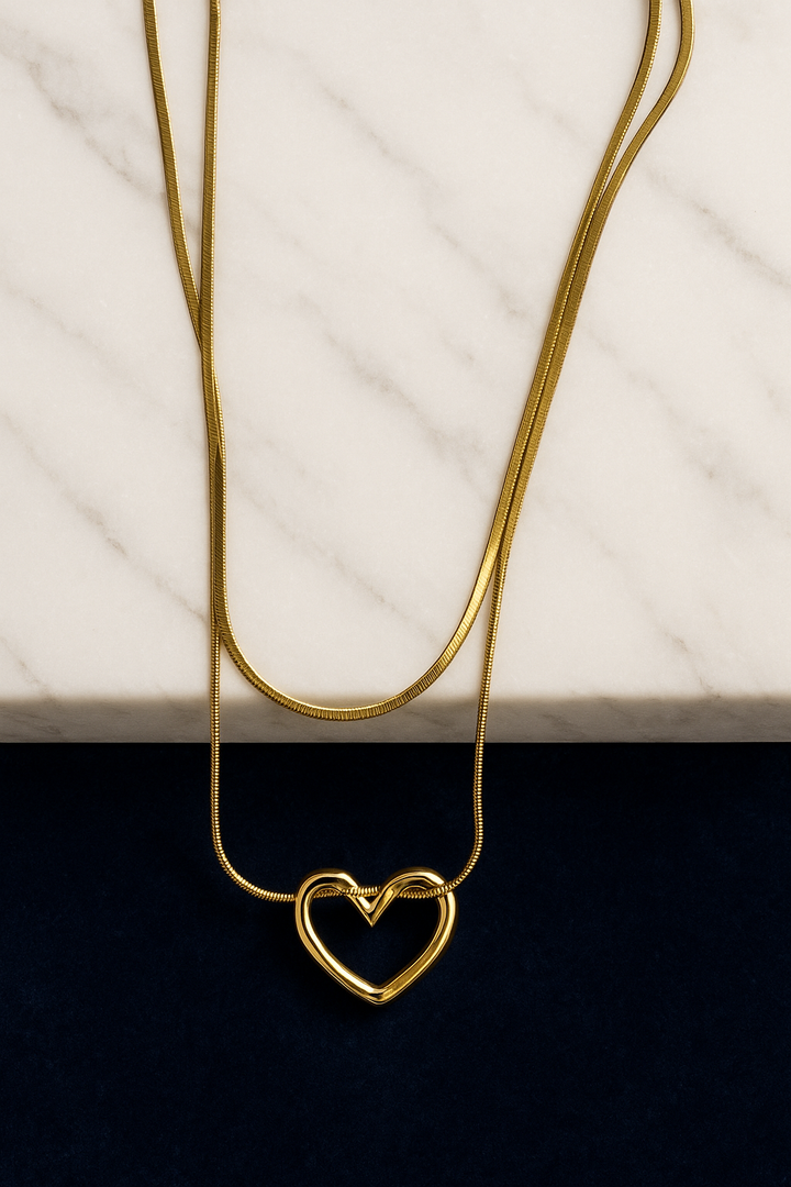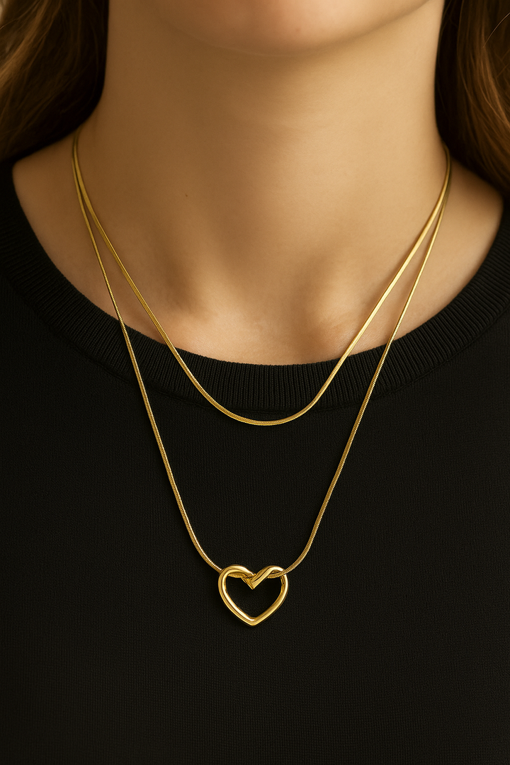 Ziwels Women’s 18K Gold-Plated Open Heart Pendant Necklace – Dual Layer, Anti-Tarnish, Waterproof Jewellery