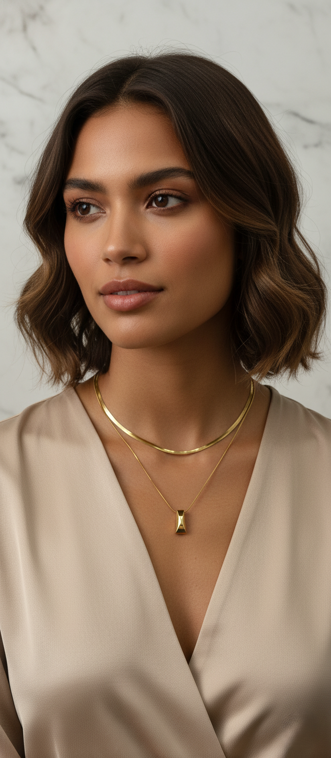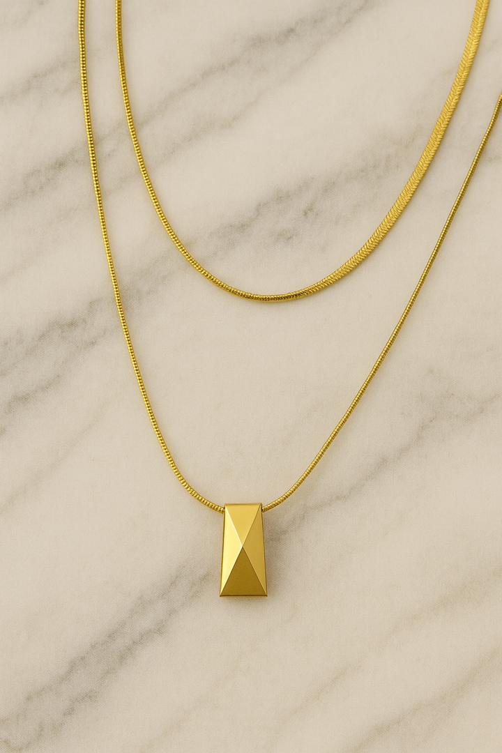 Ziwels Women’s 18K Gold-Plated Pyramid Pendant Necklace – Dual Layer, Waterproof, Anti-Tarnish Jewellery