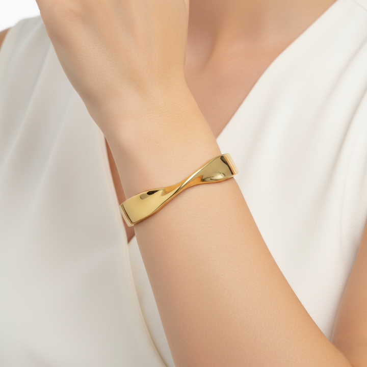 Ziwels Women’s 18K Gold Plated Twisted Wave Bracelet | Modern Minimal Design, Anti-Tarnish, Waterproof