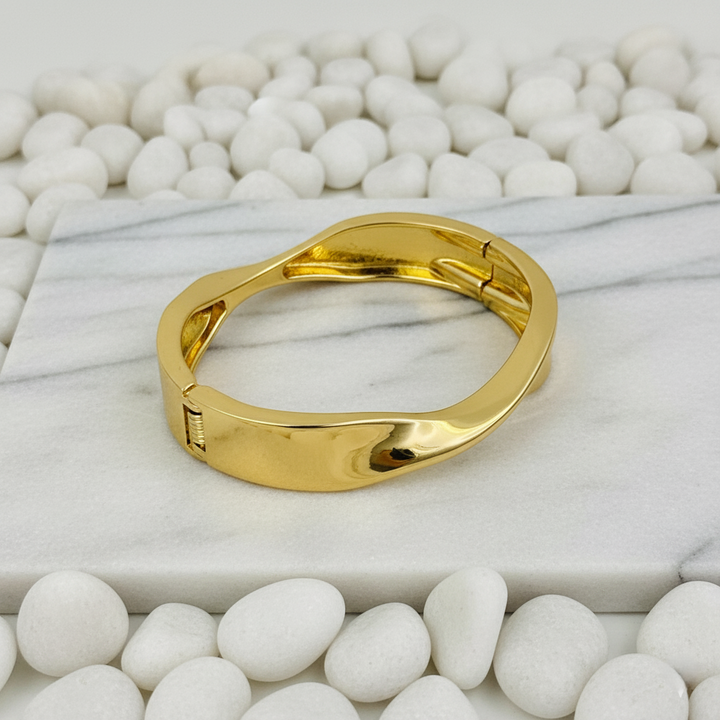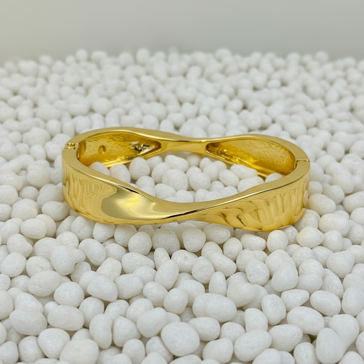 The Ziwels Women’s Twisted Wave Gold-Plated Bracelet is a true expression of minimal luxury with a contemporary edge. Designed with a sleek wave-inspired twist, this bracelet reflects light beautifully from every angle, creating a statement of elegance and modern charm.