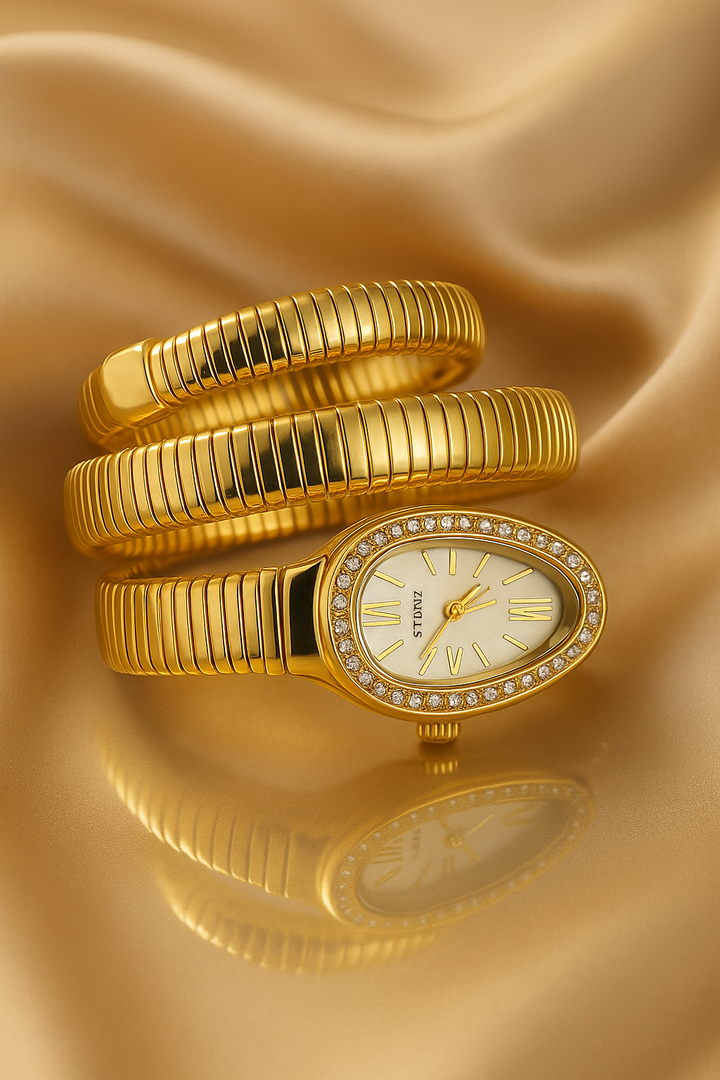 Elevate your wristwear with the Ziwels 18K Gold-Plated Wrap Watch Bracelet, a masterpiece that merges the grace of jewellery with the precision of time.