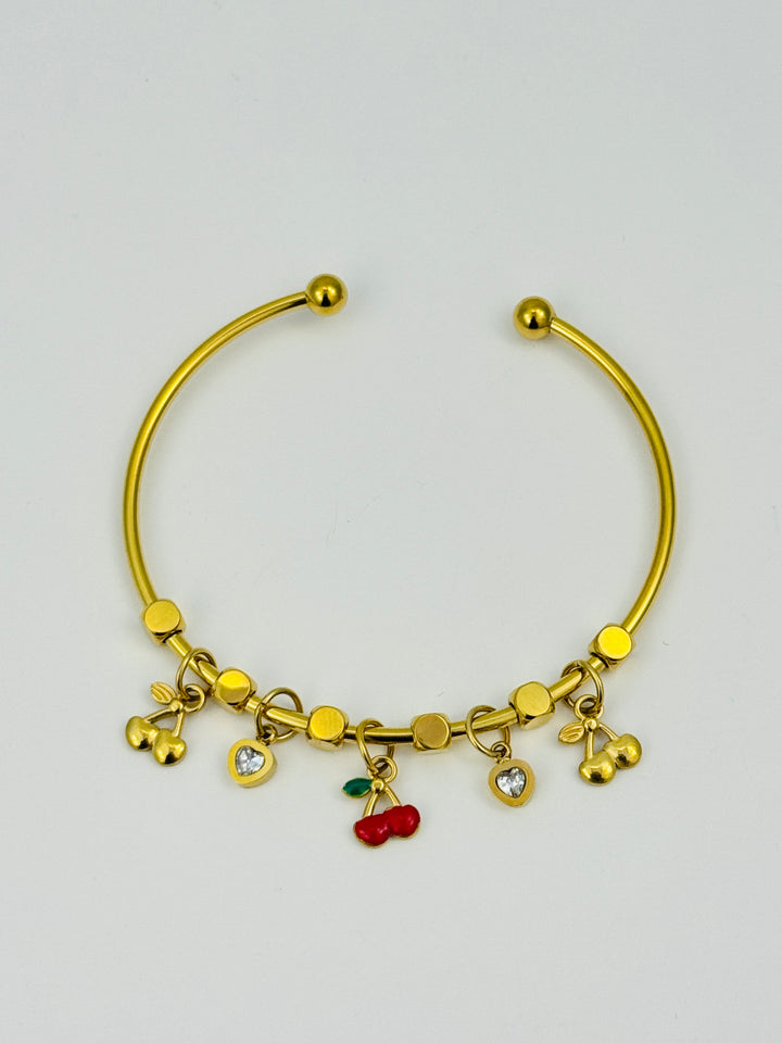Design: Open bangle with dangling cherry & crystal charms