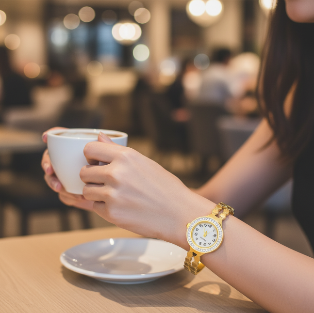 Crafted from high-quality stainless steel and finished with 18K gold plating, this bracelet watch is anti-tarnish, waterproof, and hypoallergenic, ensuring durability and comfort. Its lightweight build and luxurious detailing make it ideal for festive wear, parties, weddings, or gifting someone special.