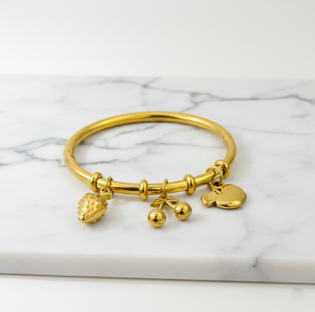 Lightweight yet sturdy, this fruit-inspired bangle is a fun addition to your jewellery collection and looks stunning when worn alone or stacked with other Ziwels designs.