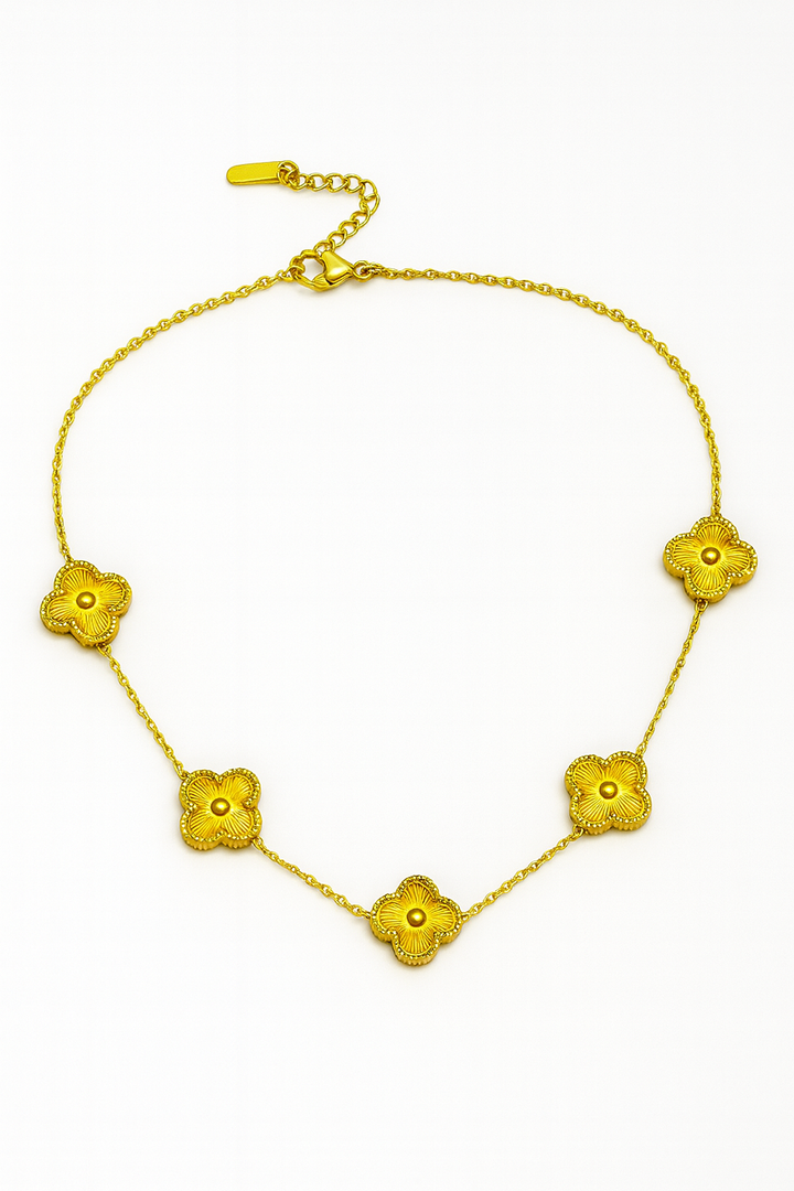 Ziwels Women’s Golden Clover Jewellery Set – 18K Gold Plated Necklace, Bracelet, Earrings & Ring | Anti-Tarnish, Waterproof, Skin-Friendly