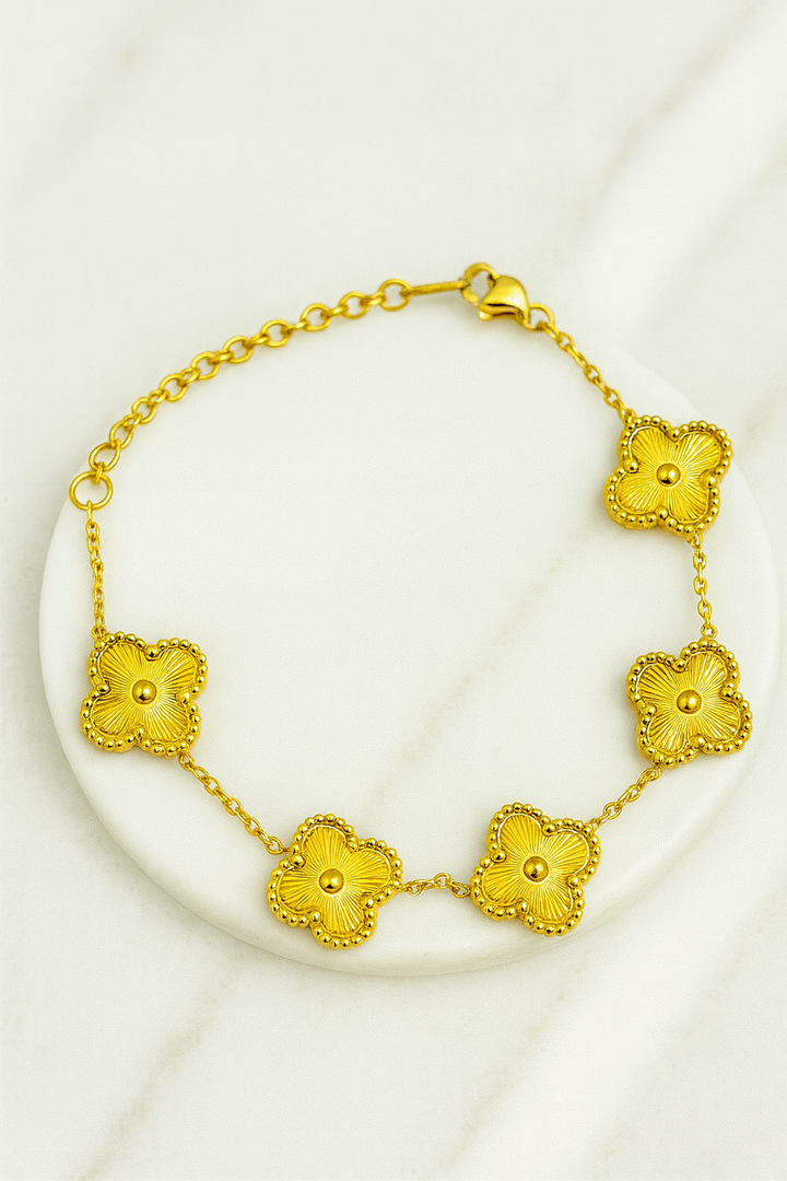 Elegant Clover Motifs – textured floral-inspired design with beaded detailing.