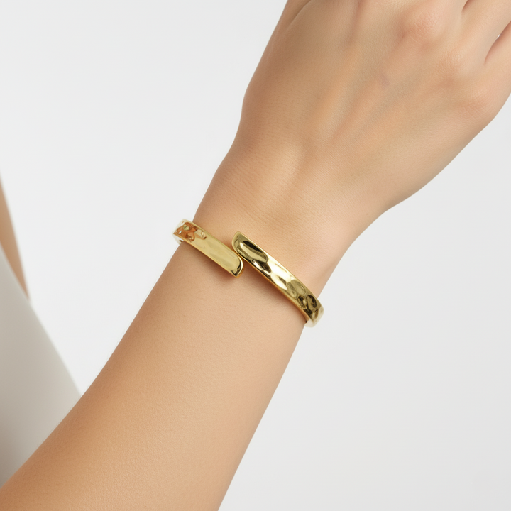 Ziwels Women’s Hammered Gold-Plated Open Bracelet | Premium Stainless Steel, Anti-Tarnish & Waterproof