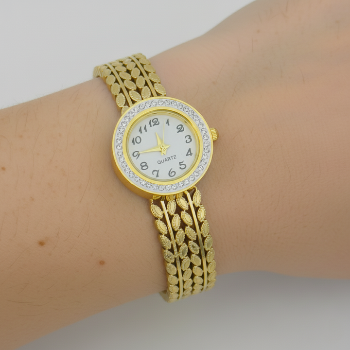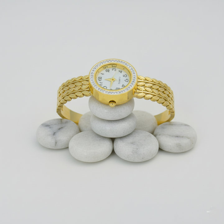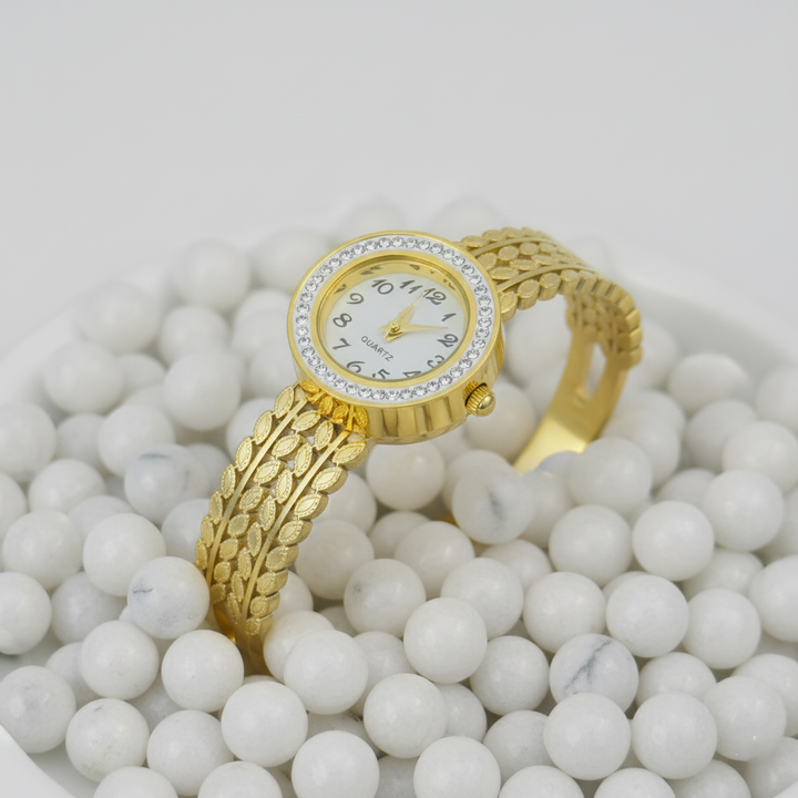 Ziwels Women’s Leaf Pattern Bracelet Watch – 18K Gold Plated Stainless Steel with Crystal Dial | Waterproof, Anti-Tarnish