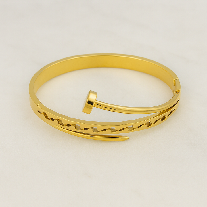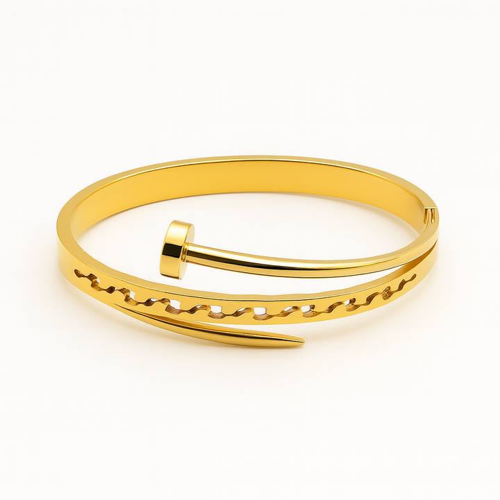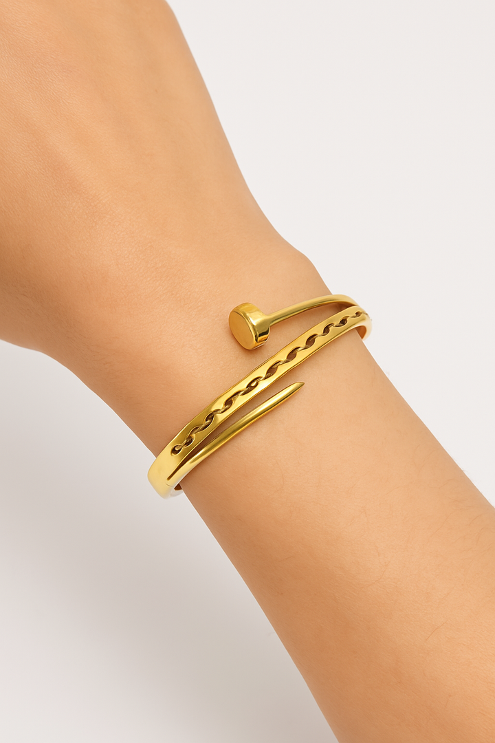 Make a bold statement with the Ziwels Women’s Nail Design Cuff Bracelet, a striking blend of strength and sophistication. Inspired by contemporary minimalism, this bracelet features a sleek nail-shaped design with intricate cut-out detailing, crafted from premium stainless steel and finished with luxurious 18K gold plating.