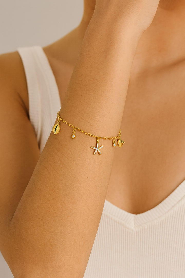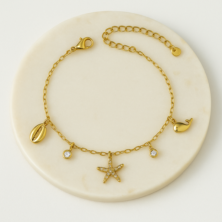 Whether styled solo for subtle elegance or layered with other bracelets, this ocean-inspired charm bracelet is the ideal jewellery piece for women who love both style and symbolism.