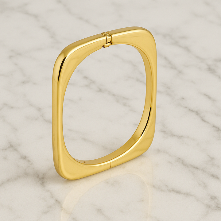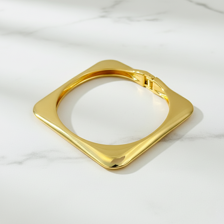 Designed in a unique square silhouette, it brings a chic, contemporary twist to classic wristwear, making it a perfect accessory for both daily wear and special occasions. The smooth polished finish exudes elegance, while the sturdy clasp ensures a secure and comfortable fit.