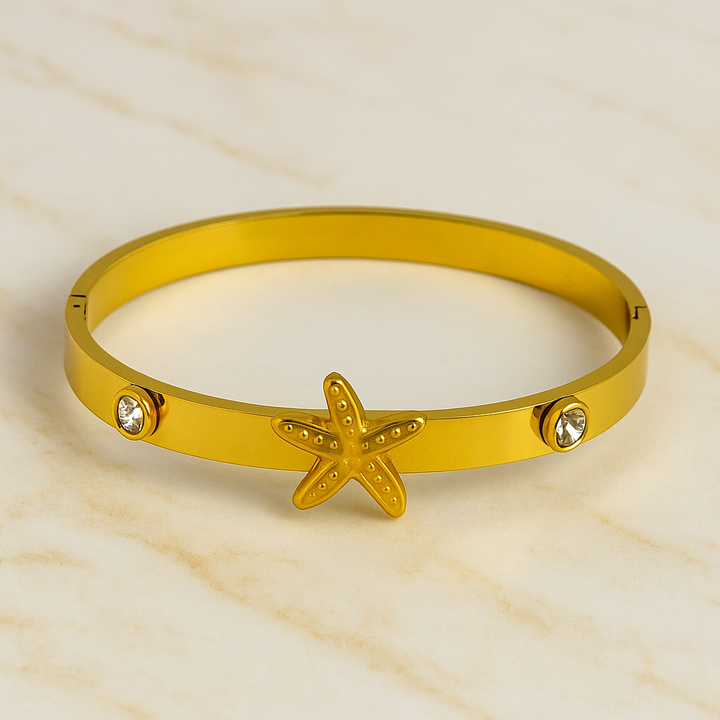 Ziwels Women’s Starfish Bracelet – 18K Gold Plated Stainless Steel with Crystal Accents | Anti-Tarnish, Waterproof