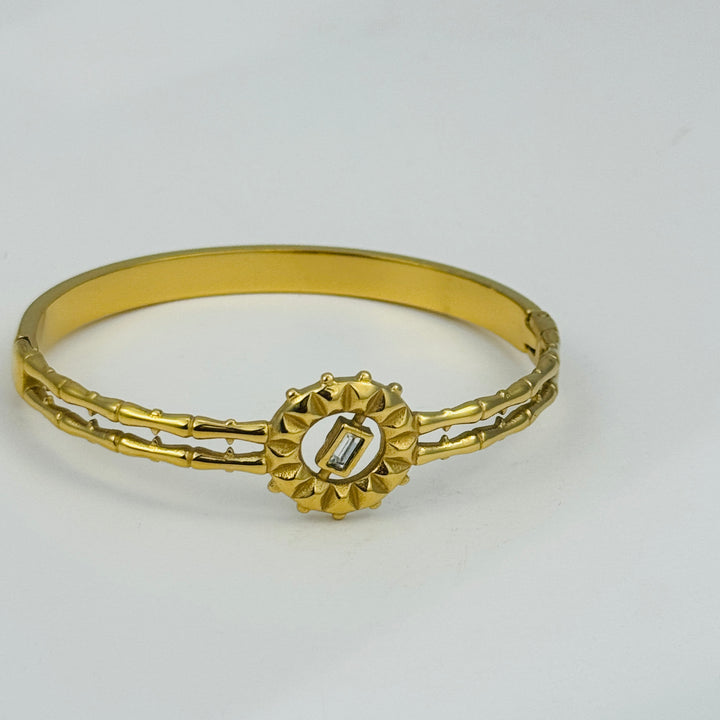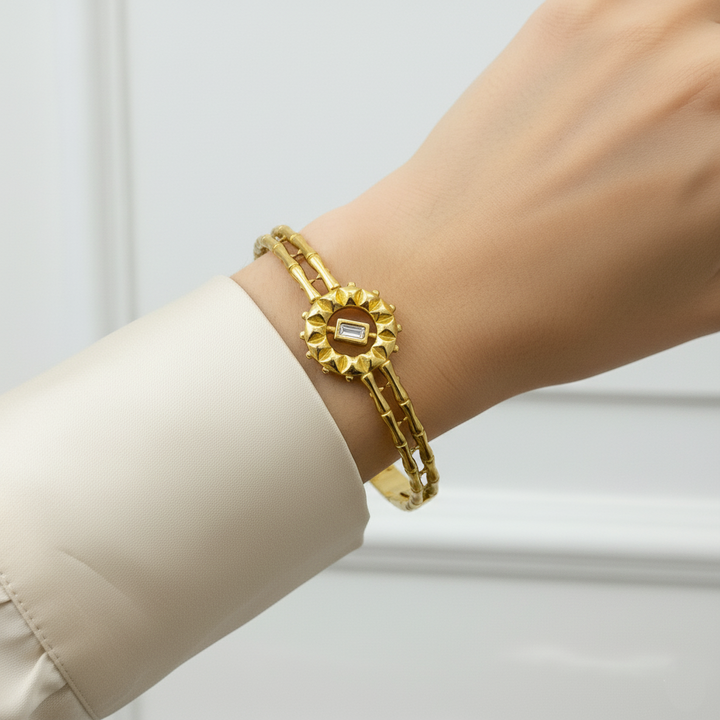 Ziwels Women’s Sunburst Design Bracelet – 18K Gold Plated Stainless Steel with Geometric Crystal Center | Anti-Tarnish, Waterproof