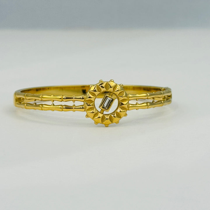 Illuminate your style with the Ziwels Women’s Sunburst Design Bracelet, a radiant piece that symbolizes energy, positivity, and timeless beauty. The bracelet features a geometric sunburst motif at the center, encasing a sparkling rectangular crystal, with a dual-line textured band that enhances its bold elegance.
