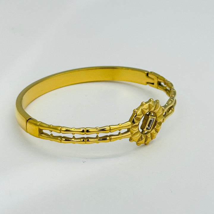 Crafted from premium stainless steel and finished in 18K gold plating, this bracelet is anti-tarnish, waterproof, and hypoallergenic, ensuring durability and shine for years to come. Its unique design makes it perfect for women who love statement jewellery that stands out at weddings, festive occasions, or evening parties.